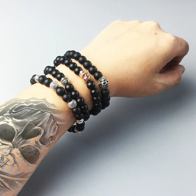 - Silver and matt black obsidian beads - approximately 8mm diameter