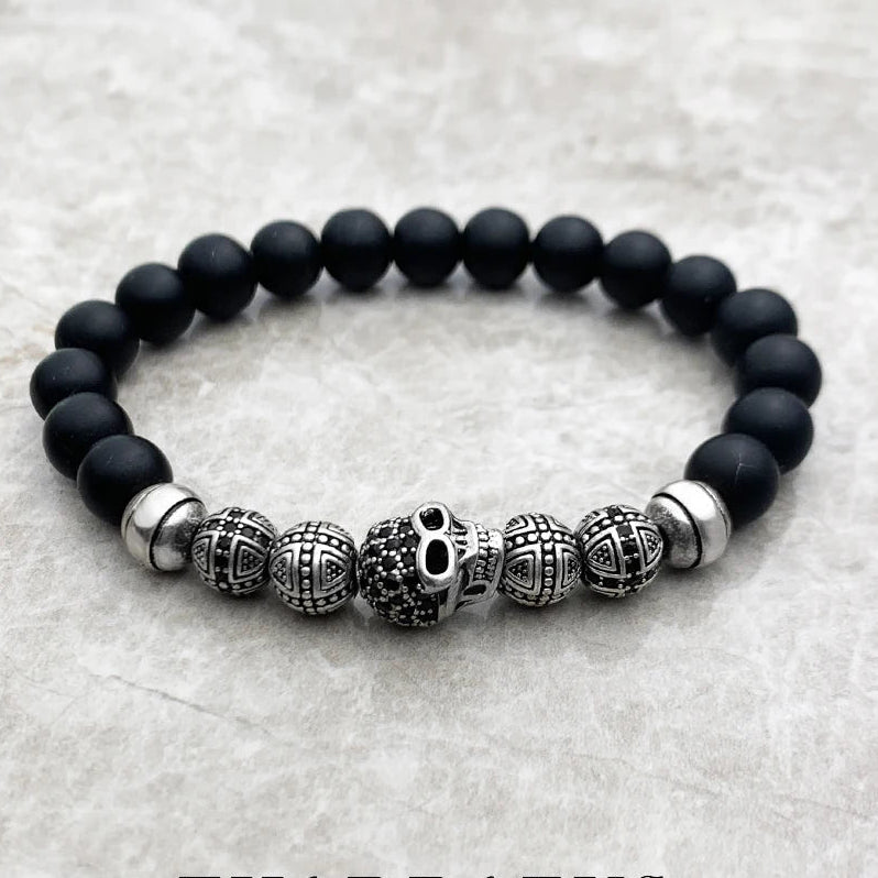 Obsidian and Silver Bead Bracelet