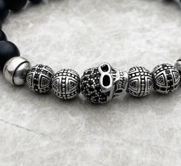 - Silver cross and skull beads