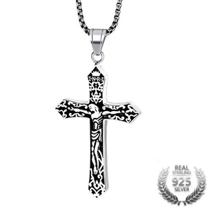 Sterling Silver Cross Pendant with Black Leather Rope Necklace
