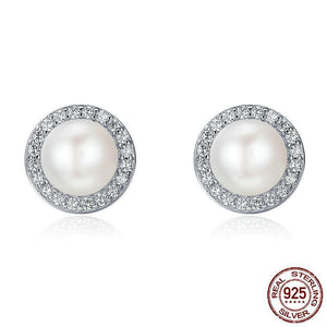 Sterling Silver Round Freshwater Pearl & Cubic Zirconia Stud Earrings