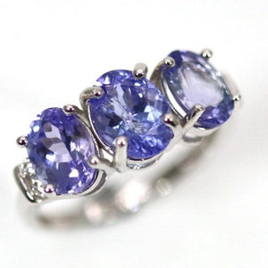 Genuine Three Stone Tanzanite Ring with a Sterling Silver Setting