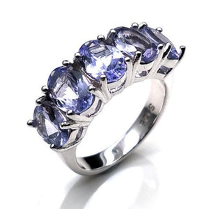 Genuine Five Stone Tanzanite Ring in a Sterling Silver Setting
